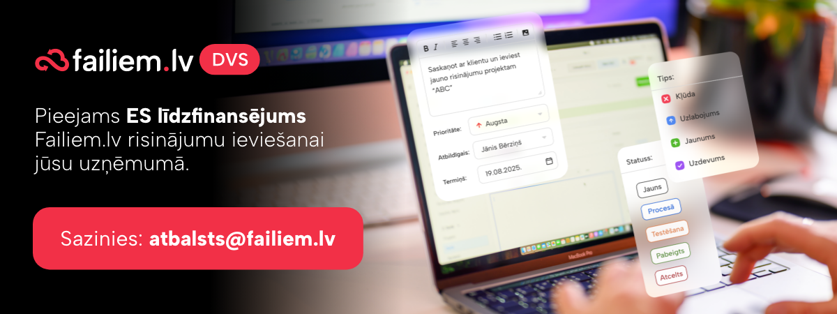 Failiem.lv aizsargā jūsu datus izmantojot šifrēšanu, stingru piekļuves kontroli un atbilstību ES noteikumiem.